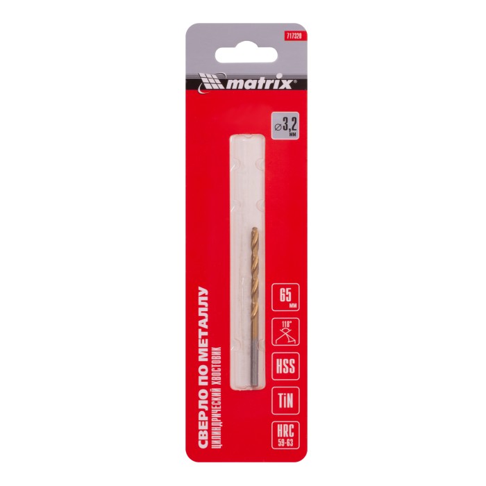 Сверло по металлу, 3.2 мм, HSS, нитридтитановое покрытие, цилиндрический хвостовик Matrix