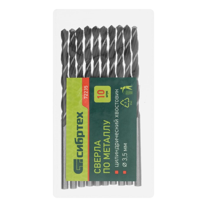 Сверло по металлу, 3.5 мм, быстрорежущая сталь, 10 шт, цилиндрический хвостовик Сибртех