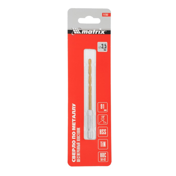 Сверло по металлу, 3.5 мм, HSS, нитридтитановое покрытие, шестигранный хвостовик Matrix