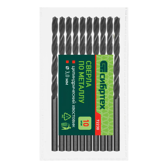 Сверло по металлу Сибртех 72230 из быстрорежущей стали, с цилиндрическим хвостовиком, 10 шт. в упаковке, имеет угол заточки 118° и используется для получения отверстий диаметром 3,0 мм в цветных и тяжелых металлах. Инстр...