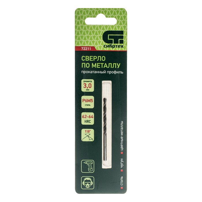 Сверло по металлу Сибртех 72211 диаметром 3,0 мм, имеет угол заточки 118°, оптимальный для получения отверстий в черных и тяжелых металлах, в том числе стали, чугуне и твердой бронзе. Отличается наиболее выгодной стоимос...