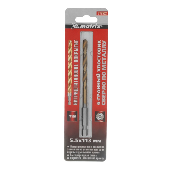 Сверло по металлу, 5.5 мм, HSS, нитридтитановое покрытие, шестигранный хвостовик Matrix