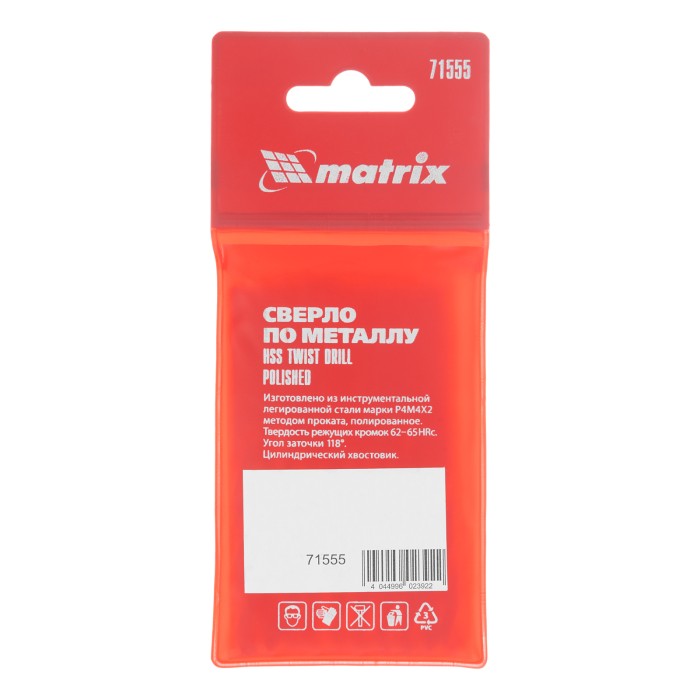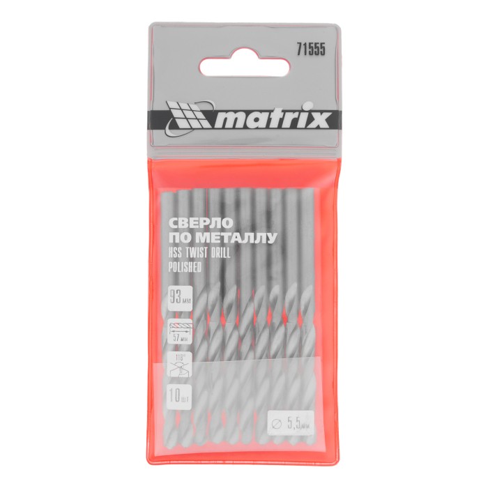 Сверло по металлу, 5.5 мм, полированное, HSS, 10 шт, цилиндрический хвостовик Matrix