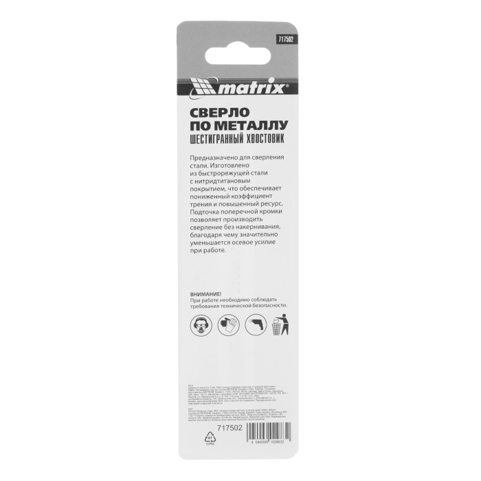 Сверло по металлу Matrix 717502 диаметром 5 мм, из стали HSS, с нитридтитановым покрытием и 6-гранным хвостовиком, предназначено для получения отверстий в черном металле, стали, чугуне и твердой бронзе. Устанавливается в патрон дрели.ПреимуществаПрочность — сверло изготовлено из быстрорежущей стали HSS.Высокий ресурс — нитридтитановое покрытие обеспечивает стойкость оснастки к коррозии и перегреву.Эффективная работа — за счет полированной поверхности сверло меньше подвержено трению и лучше отводит стружку.Надежная фиксация — шестигранный хвостовик не проворачивается в патроне дрели.