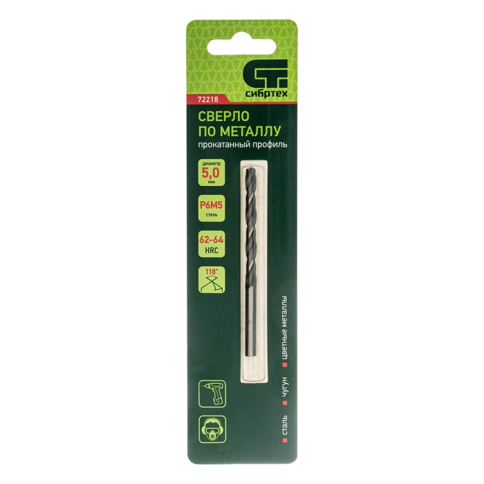 Сверло по металлу Сибртех 72218 диаметром 5,0 мм, имеет угол заточки 118°, оптимальный для получения отверстий в черных и тяжелых металлах, в том числе стали, чугуне и твердой бронзе. Отличается наиболее выгодной стоимос...