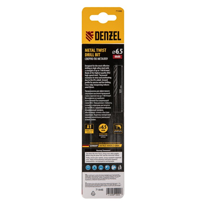 Сверло по металлу, 6,5 мм, HSS Co-8%// Denzel