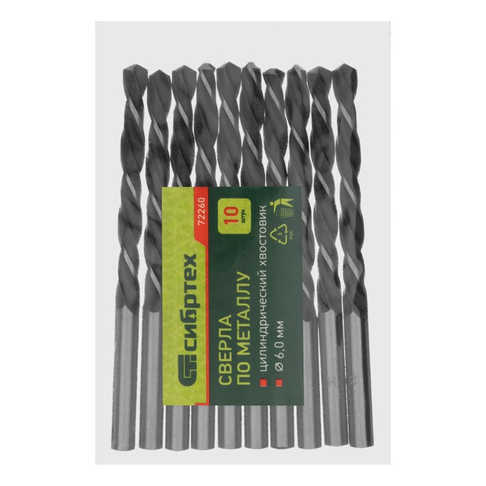 Сверло по металлу Сибртех 72260 из быстрорежущей стали, с цилиндрическим хвостовиком, 10 шт. в упаковке, имеет угол заточки 118° и используется для получения отверстий диаметром 6,0 мм в цветных и тяжелых металлах. Инстр...