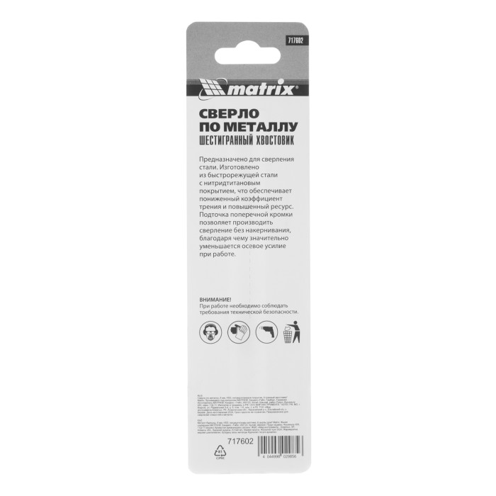 Сверло по металлу Matrix 717602 диаметром 6 мм, из стали HSS, с нитридтитановым покрытием и 6-гранным хвостовиком, предназначено для получения отверстий в черном металле, стали, чугуне и твердой бронзе. Устанавливается в...
