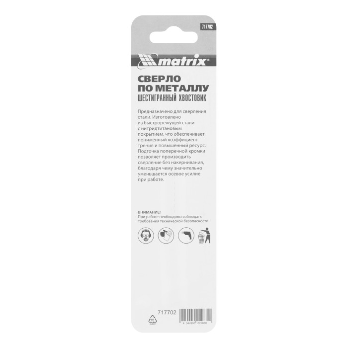 Сверло по металлу Matrix 717702 диаметром 7 мм, из стали HSS, с нитридтитановым покрытием и 6-гранным хвостовиком, предназначено для получения отверстий в черном металле, стали, чугуне и твердой бронзе. Устанавливается в патрон дрели. ПреимуществаПрочность — сверло изготовлено из быстрорежущей стали HSS.Высокий ресурс — нитридтитановое покрытие обеспечивает стойкость оснастки к коррозии и перегреву.Эффективная работа — за счет полированной поверхности сверло меньше подвержено трению и лучше отводит стружку.Надежная фиксация — шестигранный хвостовик не проворачивается в патроне дрели.