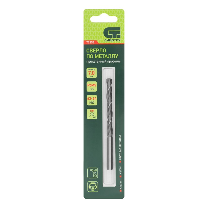 Сверло по металлу Сибртех 72253 диаметром 7,0 мм, имеет угол заточки 118°, оптимальный для получения отверстий в черных и тяжелых металлах, в том числе стали, чугуне и твердой бронзе. Отличается наиболее выгодной стоимос...