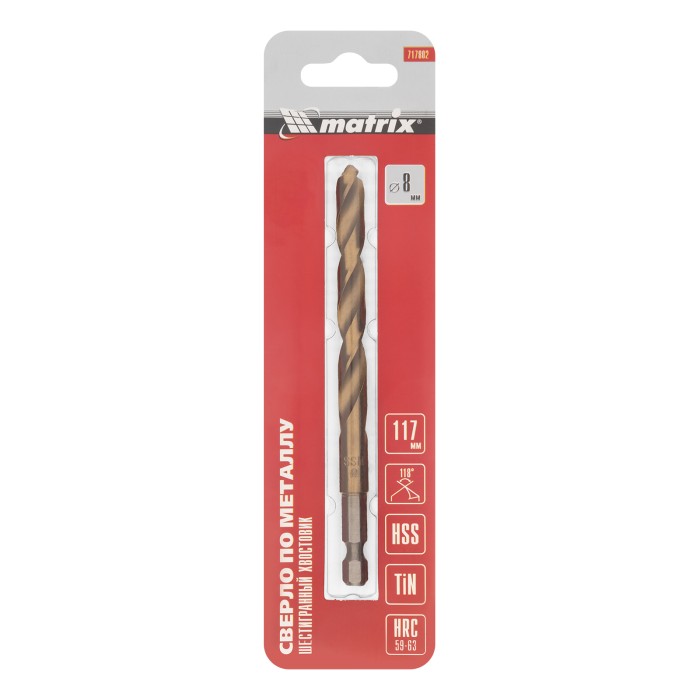 Сверло по металлу, 8 мм, HSS, нитридтитановое покрытие, шестигранный хвостовик Matrix