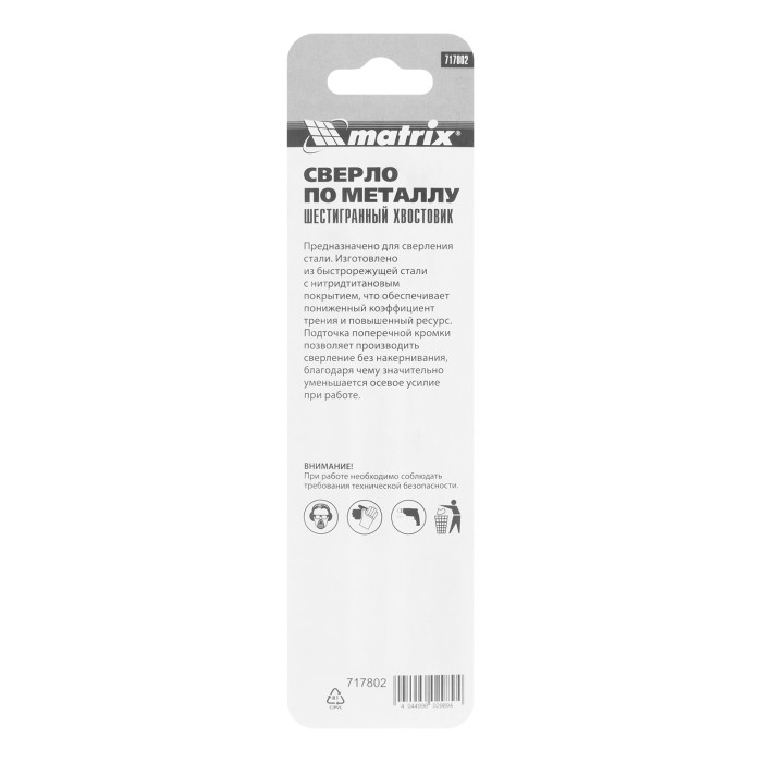 Сверло по металлу Matrix 717802 диаметром 8 мм, из стали HSS, с нитридтитановым покрытием и 6-гранным хвостовиком, предназначено для получения отверстий в черном металле, стали, чугуне и твердой бронзе. Устанавливается в патрон дрели. ПреимуществаПрочность — сверло изготовлено из быстрорежущей стали HSS.Высокий ресурс — нитридтитановое покрытие обеспечивает стойкость оснастки к коррозии и перегреву.Эффективная работа — за счет полированной поверхности сверло меньше подвержено трению и лучше отводит стружку.Надежная фиксация — шестигранный хвостовик не проворачивается в патроне дрели.