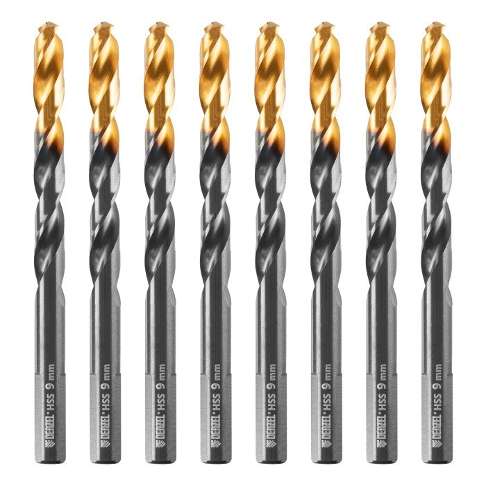 Сверло по металлу, 9 мм, HSS-Tin, Golden Tip, 8 шт. Denzel