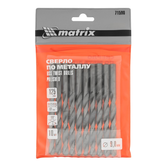 Полированное сверло по металлу Matrix 71590 из стали HSS, с цилиндрическим хвостовиком, 10 шт. в упаковке, используется для получения отверстий диаметром 9,0 мм. Угол заточки составляет 118 градусов, поэтому сверло оптим...