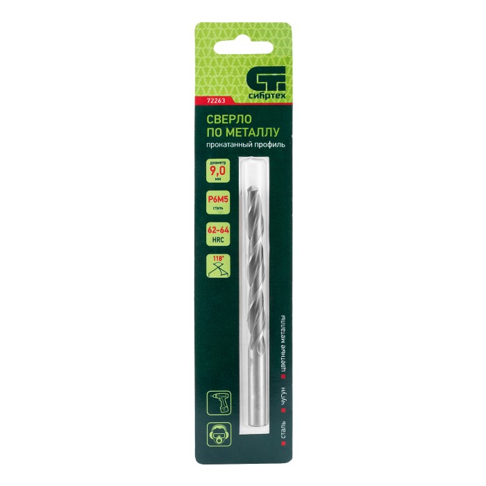Сверло по металлу Сибртех 72263 диаметром 9,0 мм, имеет угол заточки 118°, оптимальный для получения отверстий в черных и тяжелых металлах, в том числе стали, чугуне и твердой бронзе. Отличается наиболее выгодной стоимос...