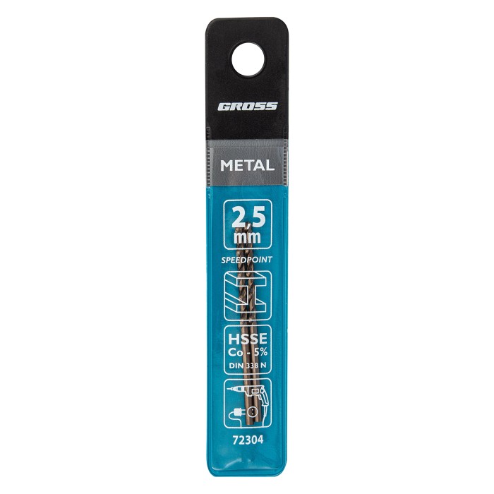 Спиральное сверло по металлу Gross 72304 диаметром 2,5 мм, из стали HSS-Co, 2 шт. в упаковке, позволяет получать отверстия высокой точности в цветных металлах, легированных и нелегированных сталях и жестком пластике. Усп...
