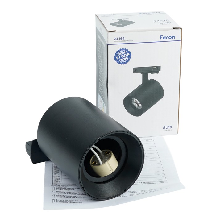 Светильник Feron AL169 трековый однофазный на шинопровод под лампу GU10, черный Артикул 51850