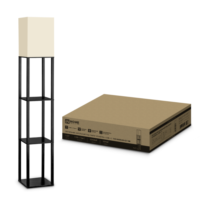 Светильник напольный под лампу этажерка ТНО 06КВ-Е27-NB 230В бежевый абажур, черный корпус IN HOME