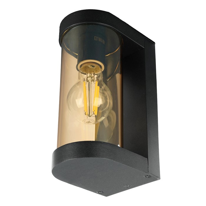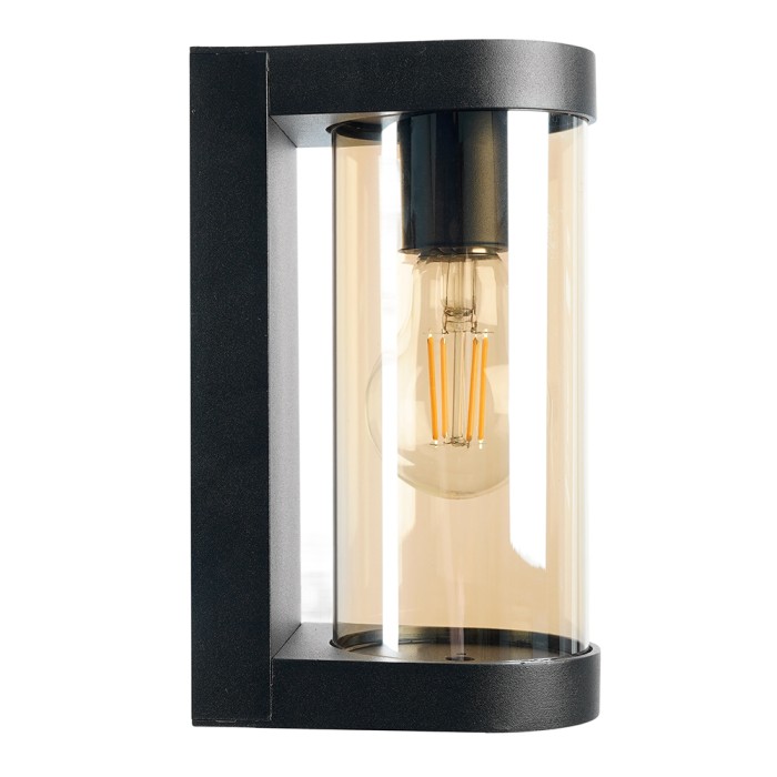 Светильник садово-парковый, серии «Бостон», (НБУ) FERON DH1901 E27, 230V, IP44, цвет черный/янтарный, цилиндр, на стену , 125*92*206мм