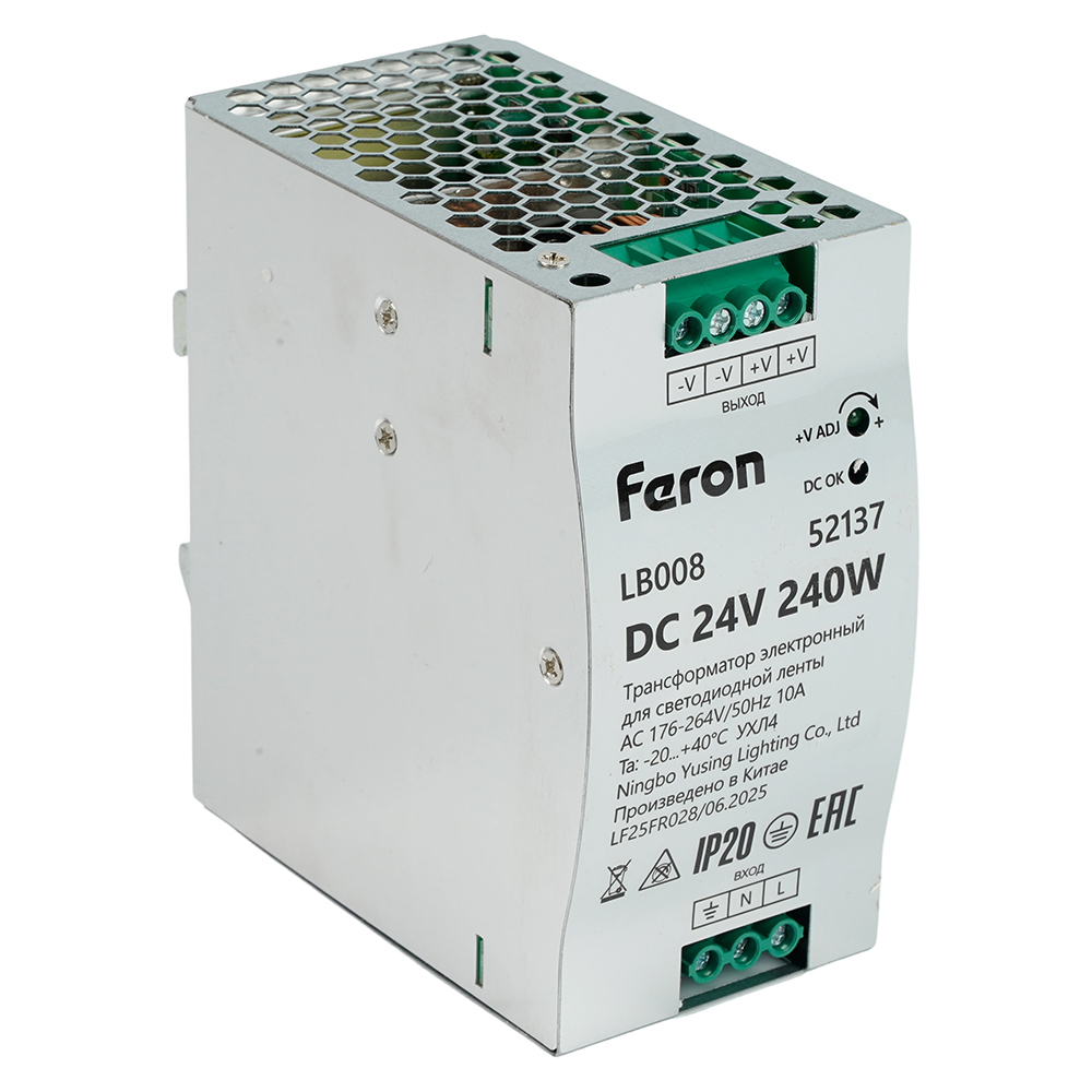 Трансформатор электронный для светодиодной ленты на DIN-рейку 240W 24V 63*125.5*113мм IP20, LB008
