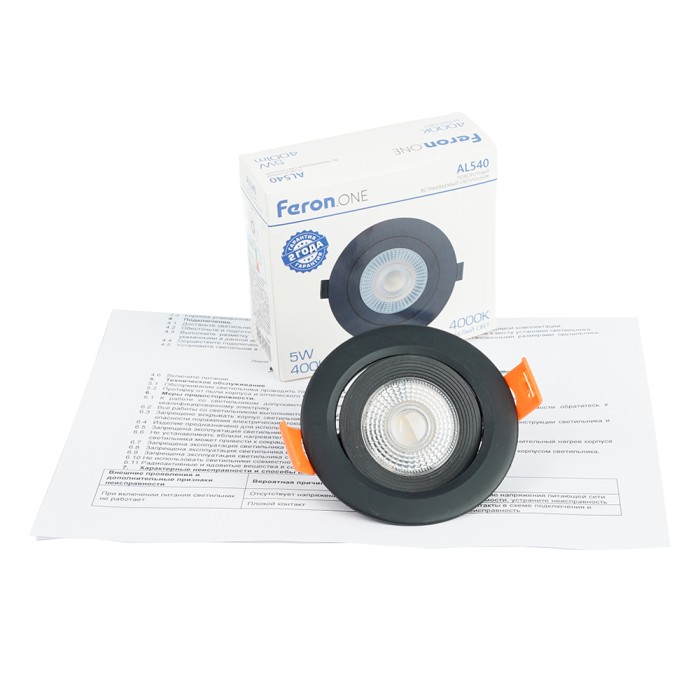 Светодиодный светильник Feron.ONE AL540 встраиваемый 5W 4000K черный "круг"