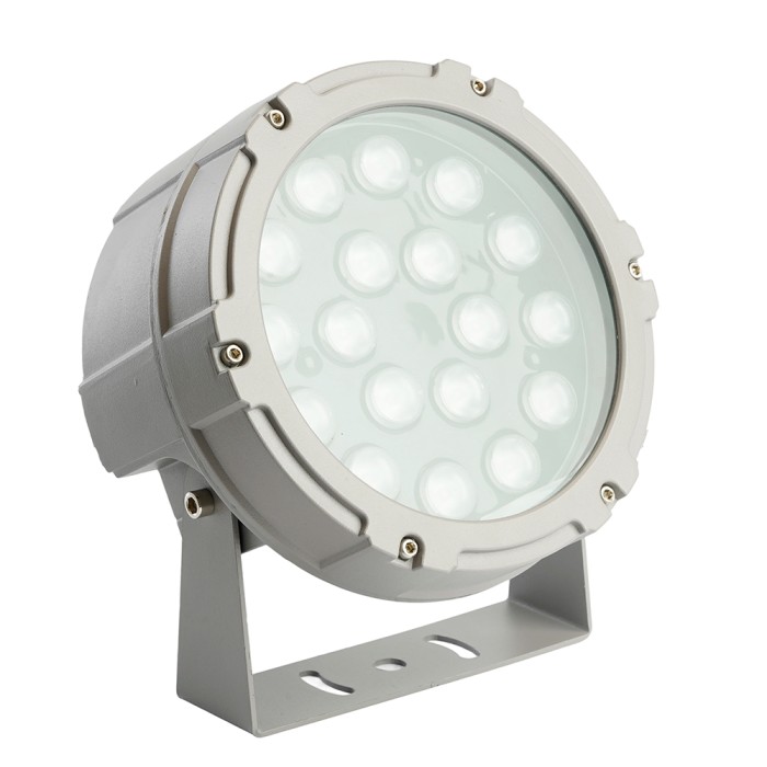 Прожектор ландшафтно-архитектурный светодиодный, на кронштейн (ДДУ) FERON LL-899, 72W, (RGBW), DC24V/50Гц, IP65, угол рассеивания 30°, 18LED*SMD, класс защиты 3, раб.t -40°C - +40°C, цвет металлик, корпус алюминий, 175*90*200мм,