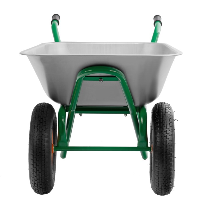 Усиленная 2-колесная садово-строительная тачка Palisad 689233 грузоподъемностью 320 кг, с объемом кузова 90 л, позволяет легко перемещать удобрения, инвентарь, сыпучие смеси и прочие грузы. Повышает эффективность работы, будет полезна на строительной площадке и загородном участке.ПреимуществаНадежная конструкция — толщина стенок кузова составляет 0,7 мм, а рамы — 1,2 мм, что обеспечивает увеличенную грузоподъемность тачки.Коррозионная стойкость — рама, ножки, опоры и диски колес покрыты порошковой эмалью, а кузов оцинкован.Прочность — благодаря завальцованным бортам кузов не деформируется при погрузке тяжелых материалов.Маневренность и устойчивость — два пневмоколеса на шариковых подшипниках улучшают балансировку и снижают давление на грунт.