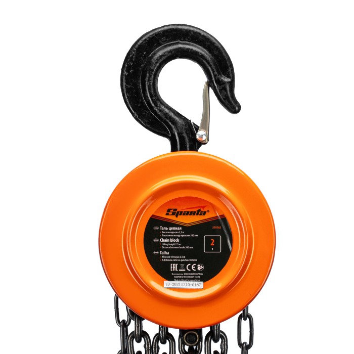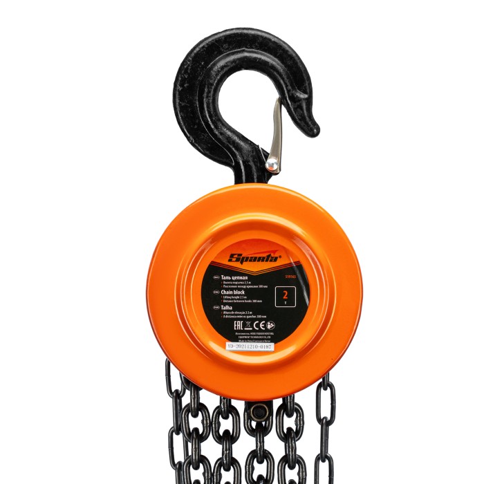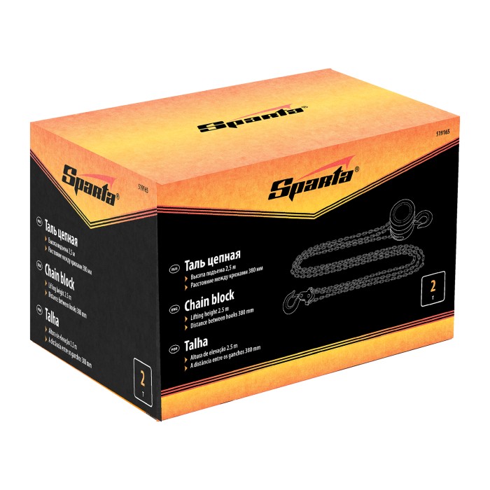 Таль цепная, 2 т, H подъема 2.5 м, расстояние между крюками 380 мм Sparta
