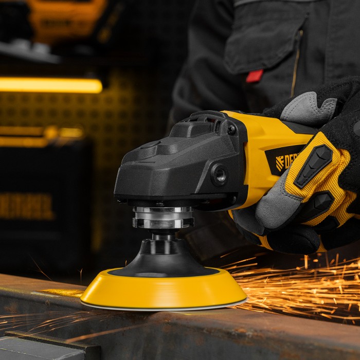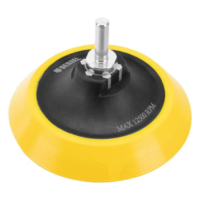 Тарелка опорная для дрели и УШМ с липучкой, 115 мм, мягкая, с адаптером c М14 на d8 Denzel
