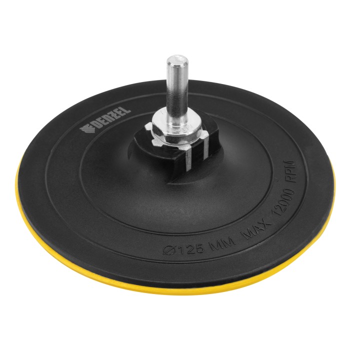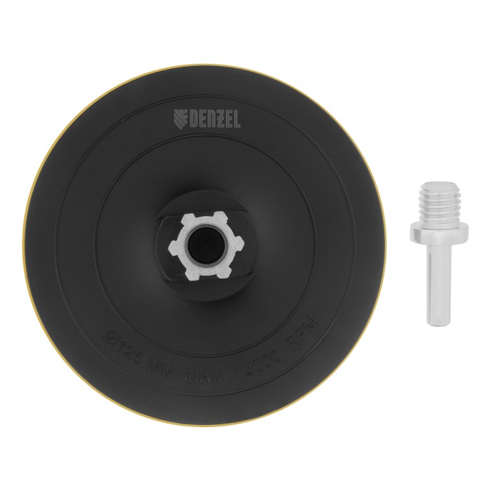 Тарелка опорная для дрели и УШМ с липучкой, 125 мм, твердая, с адаптером c М14 на d8 Denzel