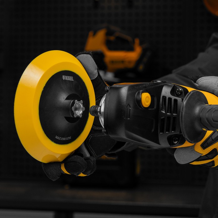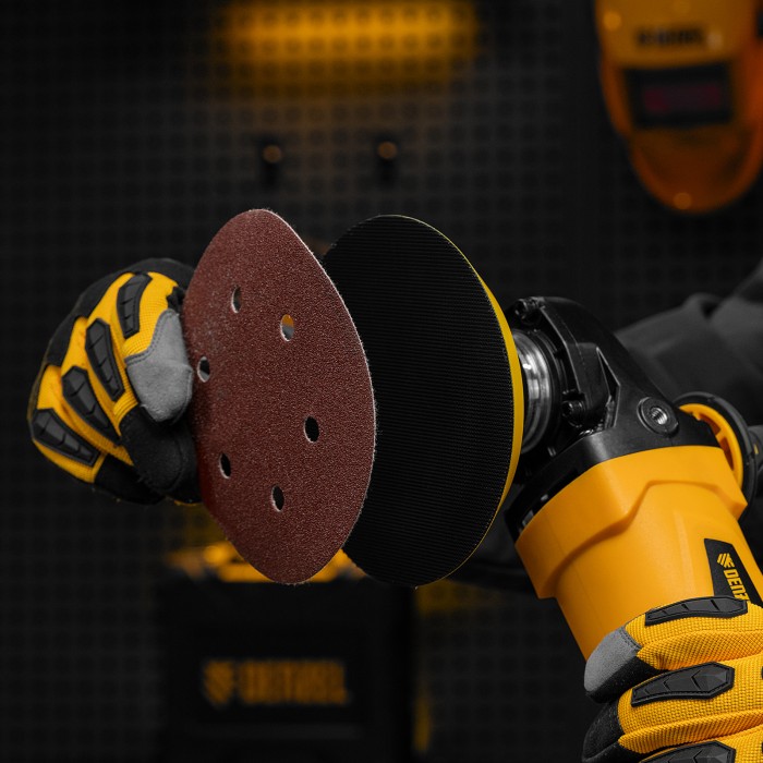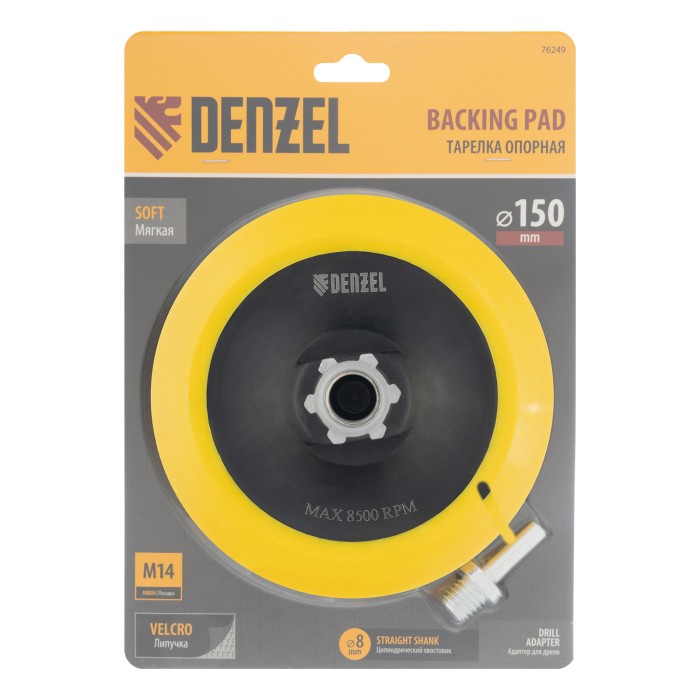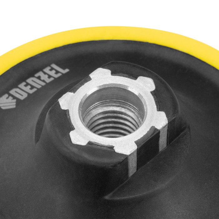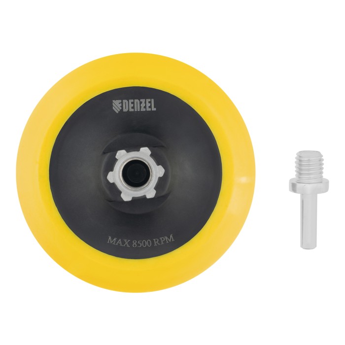 Тарелка опорная для дрели и УШМ с липучкой, 150 мм, мягкая, с адаптером c М14 на d8 Denzel