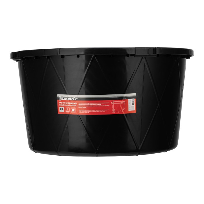 Круглый строительный ударопрочный таз Matrix 81474 с ребрами жесткости, объемом 150 л, универсален в применении: он используется для перемешивания строительных смесей, хранения сыпучих материалов и воды для технических н...