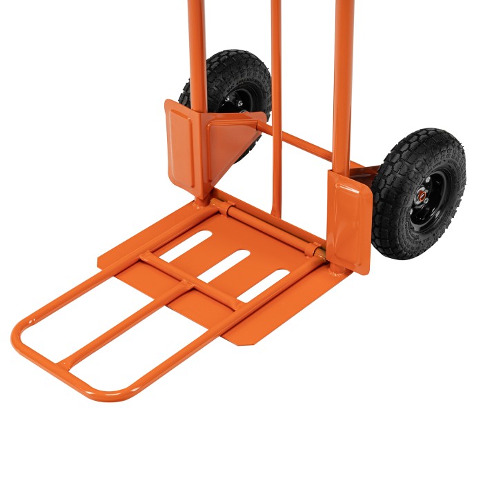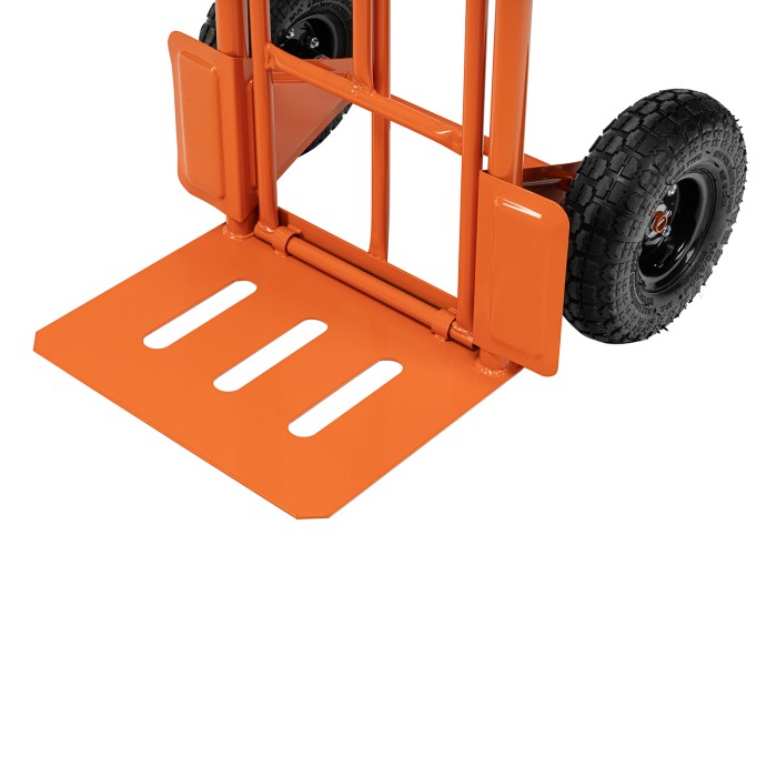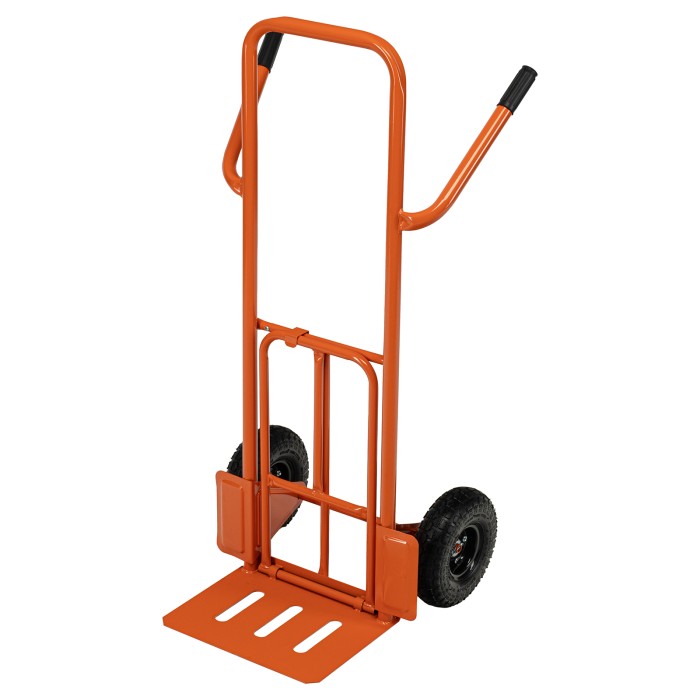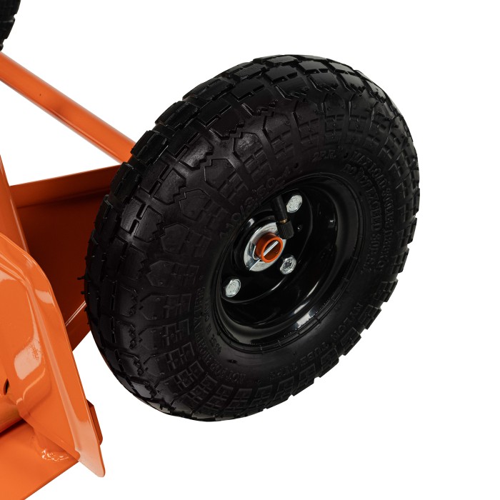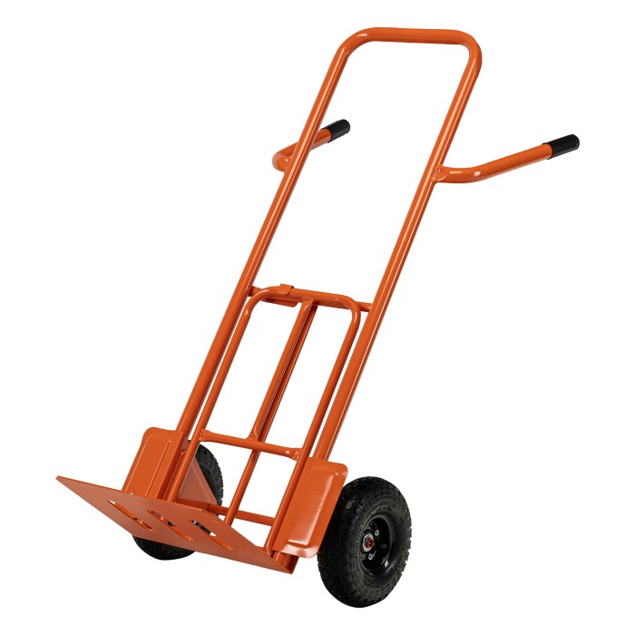 Ручная 2-колесная тележка Сибртех TTP2-01.00.000 68944 грузоподъемностью 190 кг, с пневматическими колесами диаметром 260 мм и платформой размером 580 х 290 мм, используется для перемещения крупных грузов массой до 190 к...