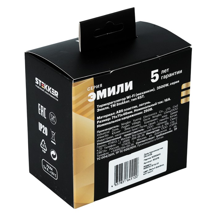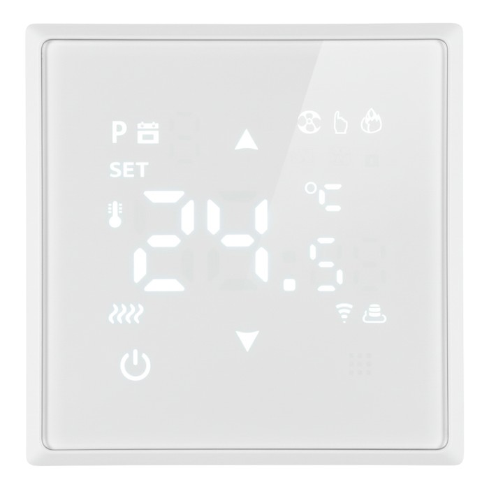 Терморегулятор сенсорный STEKKER RSW00-5119-01, серия Эмили, с подсветкой (белый), тип установки - скрытый, размер изделия 71*71*46мм., цвет белый фарфор, soft touch, материал изделия ABS пластик, латунь. Номинальное напряжение 250 , номинальный ток 16А,