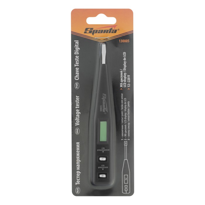 Тестер напряжения 12-220 В, жидкокристаллический дисплей Sparta