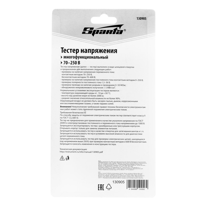 Тестер напряжения 70-250 В многофункциональный Sparta