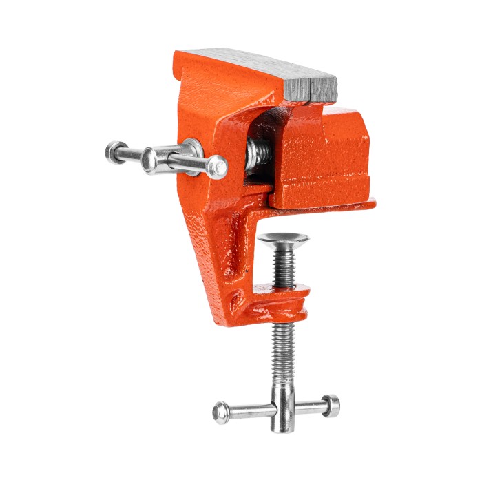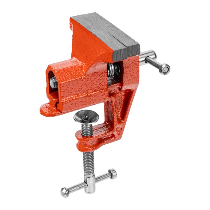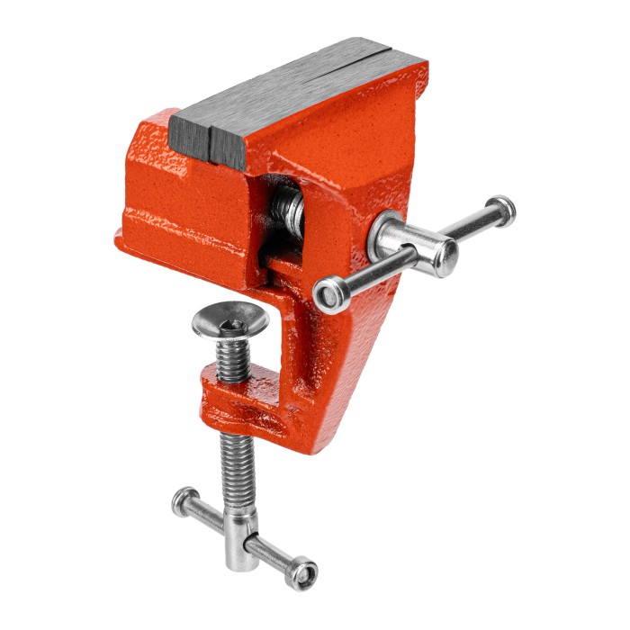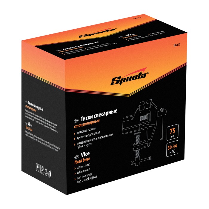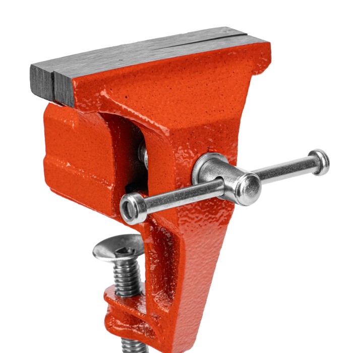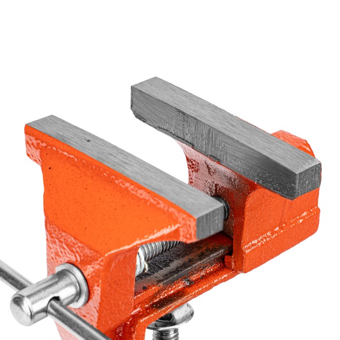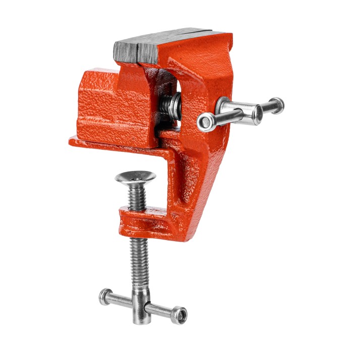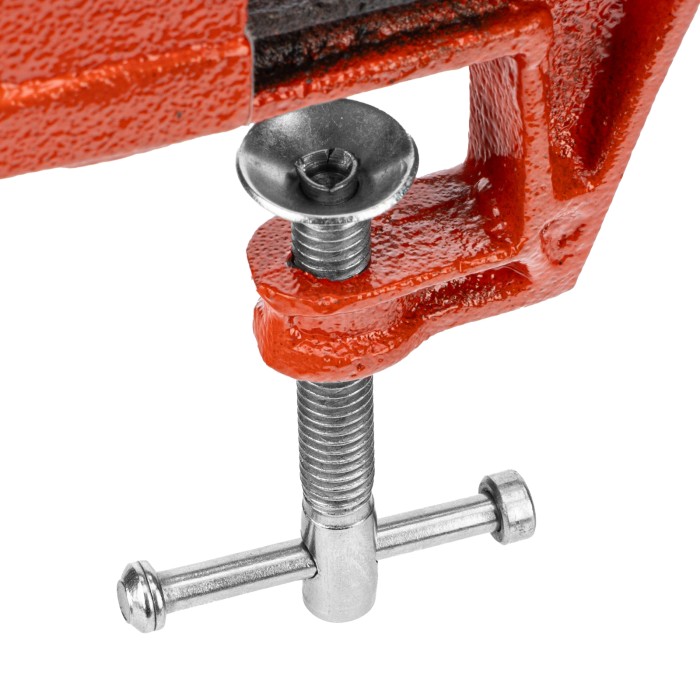 Тиски Sparta 185115 с губками шириной 75 мм и креплением для стола позволяют надежно зафиксировать небольшие деревянные детали. Пригодятся во время столярных и слесарных работ в мастерской или гараже. Рабочий ход губок составляет 35 мм, что позволяет зажимать и удерживать небольшие предметы.ПреимуществаПрочность и долговечность — инструмент выполнен из чугуна, эмалевое покрытие защищает его от коррозии.Простое использование — винтовой зажимной механизм позволяет легко устанавливать и снимать тиски с рабочего стола.Вес 805 г — тиски удобно транспортировать и перемещать по рабочей зоне.