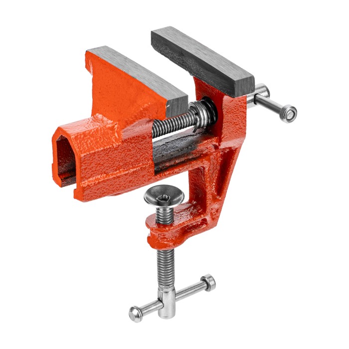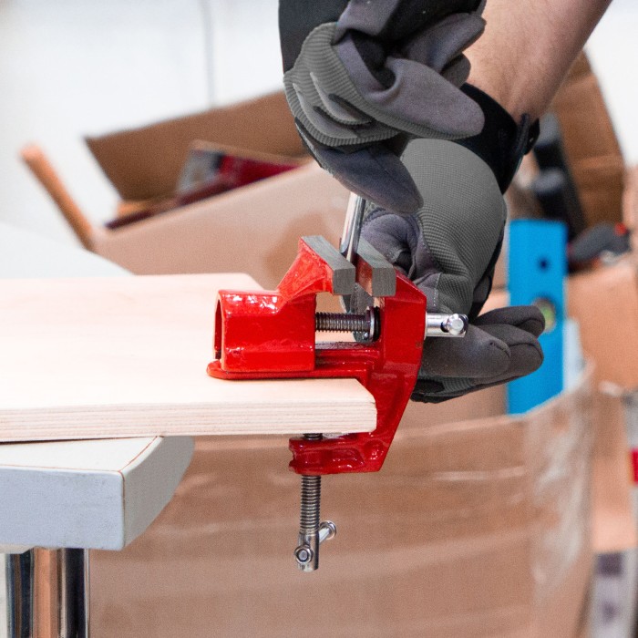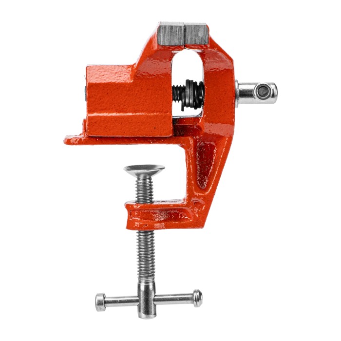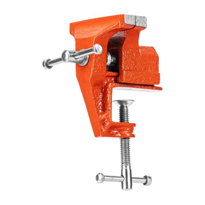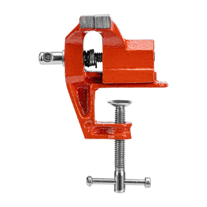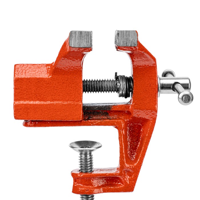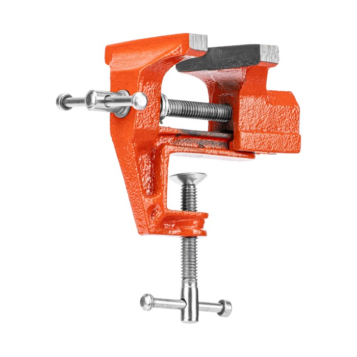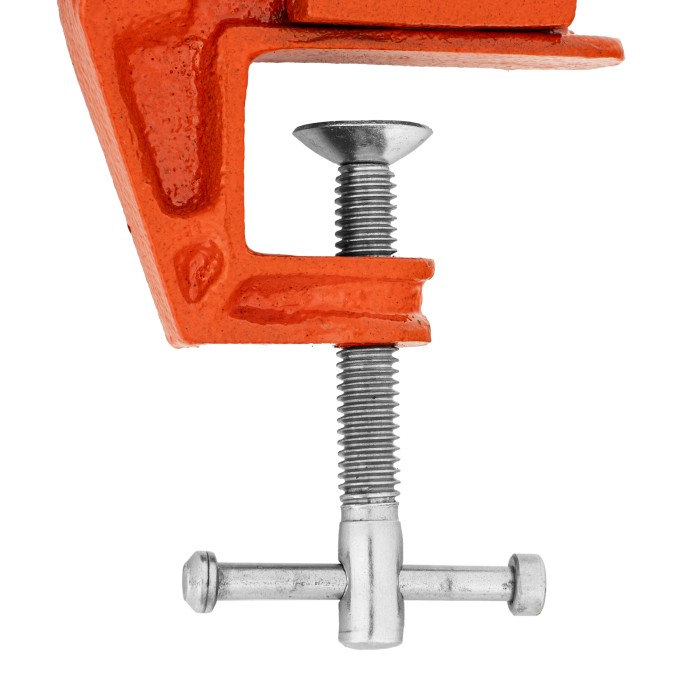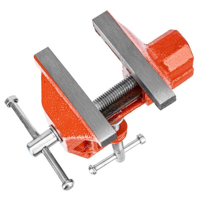 Тиски Sparta 185115 с губками шириной 75 мм и креплением для стола позволяют надежно зафиксировать небольшие деревянные детали. Пригодятся во время столярных и слесарных работ в мастерской или гараже. Рабочий ход губок составляет 35 мм, что позволяет зажимать и удерживать небольшие предметы.ПреимуществаПрочность и долговечность — инструмент выполнен из чугуна, эмалевое покрытие защищает его от коррозии.Простое использование — винтовой зажимной механизм позволяет легко устанавливать и снимать тиски с рабочего стола.Вес 805 г — тиски удобно транспортировать и перемещать по рабочей зоне.