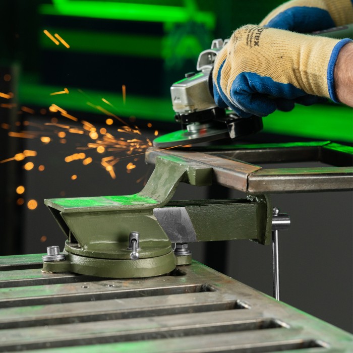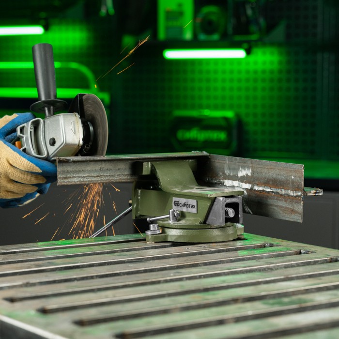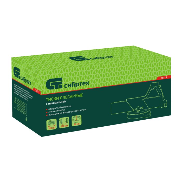 Стальные слесарные тиски Сибртех 18618 с поворотным механизмом и прижимными винтами предназначены для жесткой фиксации деталей. Ширина губок составляет 100 мм, рабочий ход — 100 мм. Используются для сверления, шлифования, пиления, выполнения сборочных и других работ. Тиски вращаются на 360°, что позволяет придать заготовке оптимальное положение. Приспособление будет полезно в мастерской, на даче и в гараже.ПреимуществаЛегкая и надежная конструкция — тиски изготовлены из прочной стали и рассчитаны на длительное использование.Простая установка — в основании имеются отверстия для крепления к верстаку.Дополнительные возможности — на корпусе есть наковальня для выравнивания заготовок при помощи молотка.Надежная фиксация — губки с рельефной поверхностью не скользят по поверхности детали.Аккуратная работа — чтобы избежать повреждения заготовок, на губки можно установить защитные накладки (приобретаются отдельно).