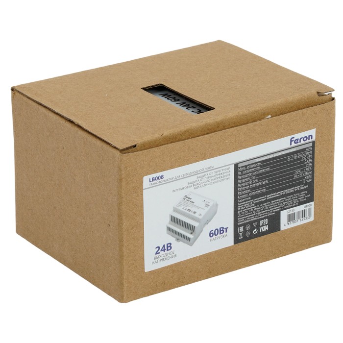 LB008 Трансформатор электронный для светодиодной ленты на DIN-рейку 60W 24V 77*92*56мм IP20