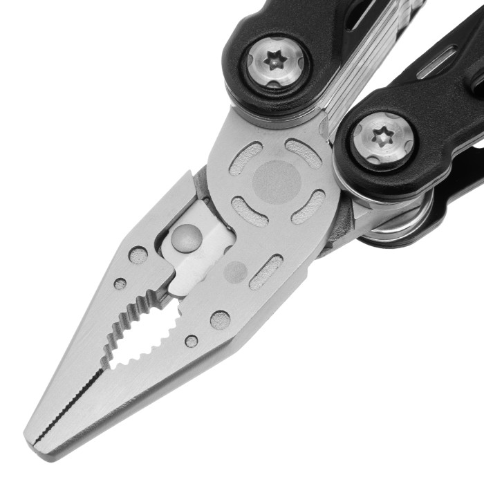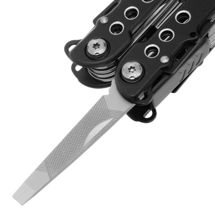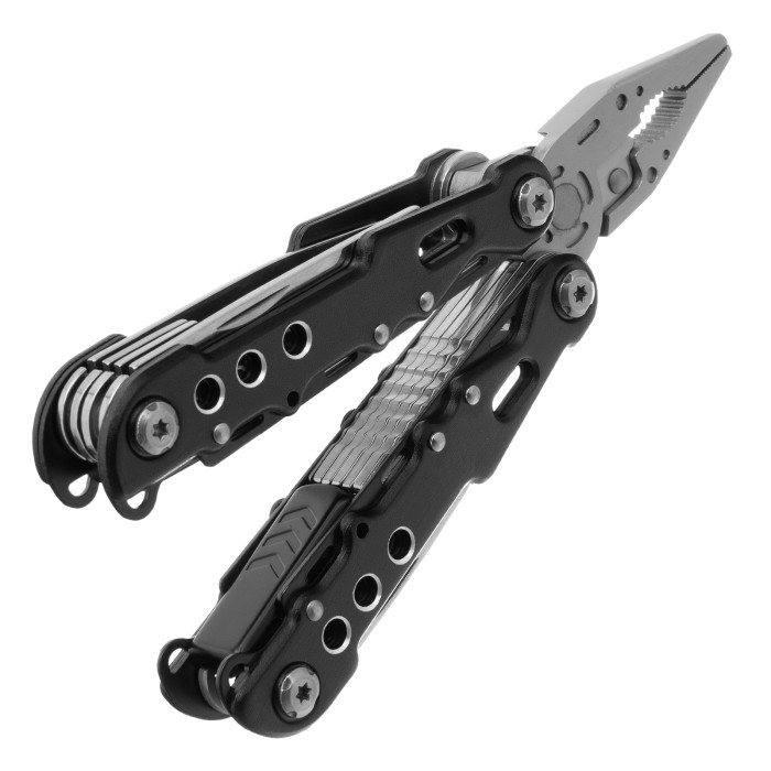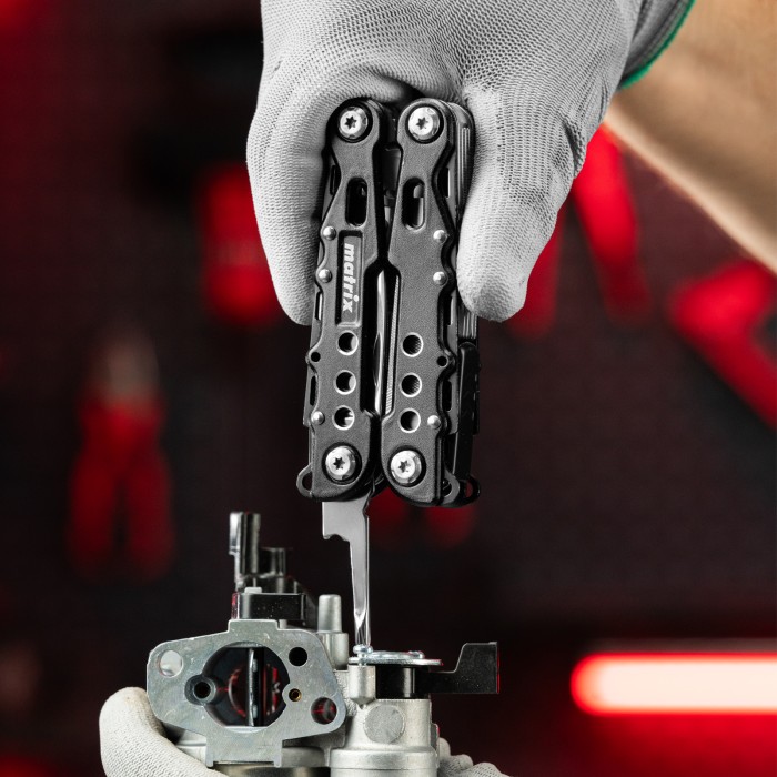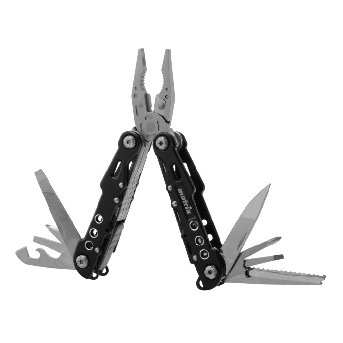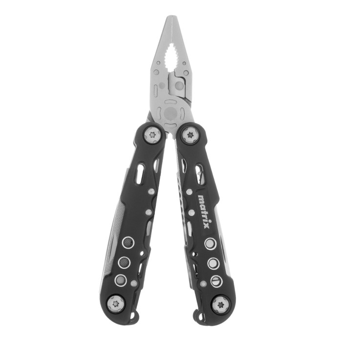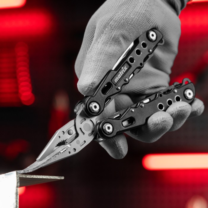 Трансформер Matrix 17622 — это мультитул длиной 165 мм с 13 функциями и авторазжимом, поставляется с чехлом. Его можно использовать в гараже — он включает длинногубцы с кусачками и захватом полукруглых предметов, а также отвертки. Инструмент пригодится в походе, на рыбалке или охоте, поскольку имеет в составе нож, пилу, открывалку и консервный нож. Благодаря пилке для ногтей мультитул будет полезен в быту.ПреимуществаДолговечность — нож и другие элементы изготовлены из прочной стали.Комфортное использование длинногубцев — инструмент имеет функцию авторазжима.Удобное хранение и транспортировка — трансформер комплектуется чехлом.