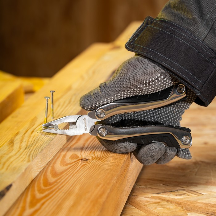 Трансформер Matrix 17623 длиной 160 мм имеет 15 функций и авторазжим, поставляется с чехлом. Может использоваться в гараже, т.к. включает длинногубцы с кусачками и захватом полукруглых предметов, а также отвертки и линей...
