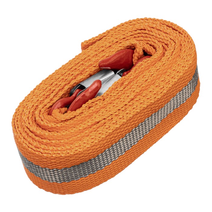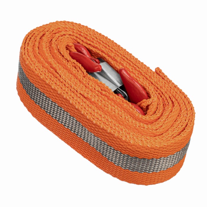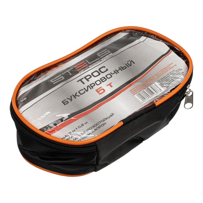 Трос буксировочный Stels 54381 с 2 крюками, поставляющийся в сумке на молнии, используется для буксировки на гибкой сцепке легковых автомобилей массой до 5 тонн. Выручит автолюбителя в сложной ситуации на дороге: если закончилось топливо, сломался двигатель, застряли колеса и т. д.ПреимуществаВысокий ресурс — трос из морозостойкого авиационного капрона не разрушается от резких перепадов температур, влажности и не растягивается в процессе эксплуатации.Длина 5 м — автомобиль находится на оптимальном расстоянии от буксировочной машины.Удобный зацеп — трос оснащен двумя крюками, а его длина позволяет сделать дополнительную петлю.Ярко-оранжевый цвет — изделие хорошо видно на дороге, что обеспечивает дополнительную безопасность буксировки.Качественное исполнение — приспособление изготовлено согласно требованиям ПДД и основным положениям допуска ТС к эксплуатации.Удобная транспортировка и хранение — трос ленточного типа легко сматывается в рулон и убирается в сумку на молнии.