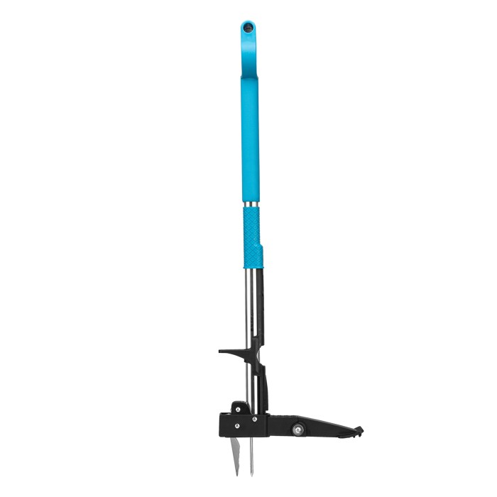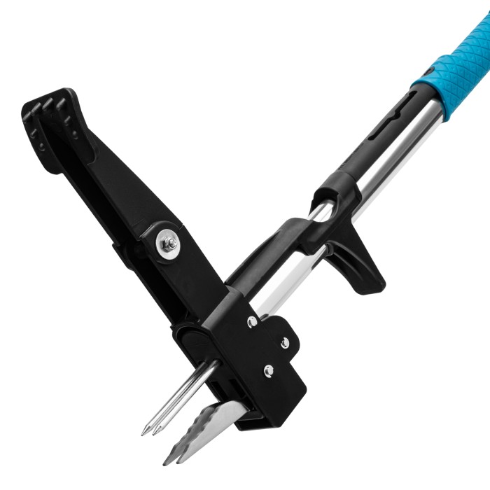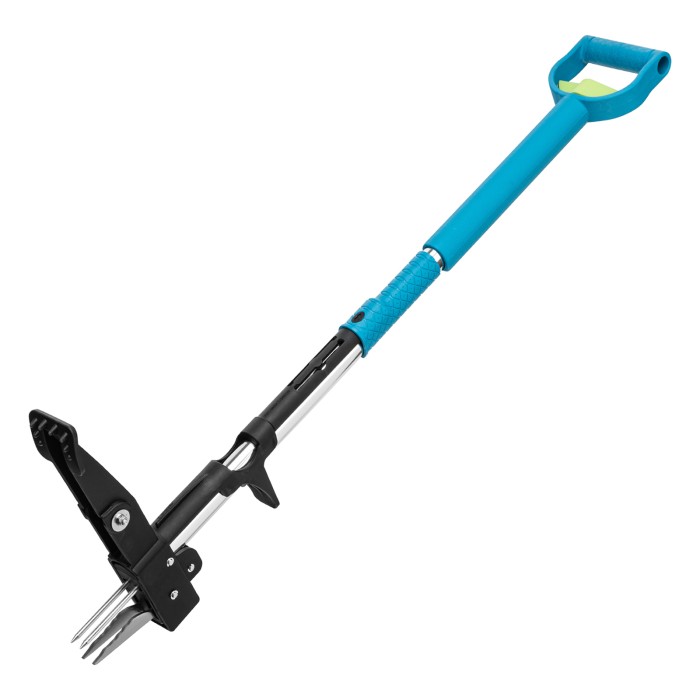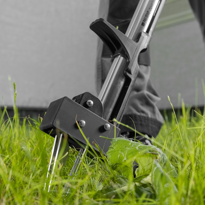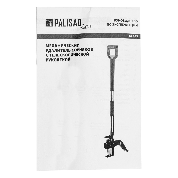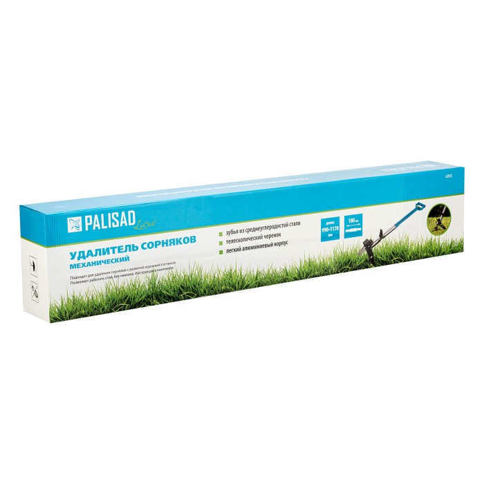 Телескопический удалитель сорняков Palisad LUXE 62033 с раздвижной рукояткой 990-1170 мм и алюминиевым корпусом позволяет избавиться от сорняков с мощной корневой системой. Легко выдергивает сорняки вместе с корнем, не повреждая при этом культурные растения. Пригодится дачникам во время работы на огороде или в саду.ПреимуществаПрочность — рукоятка изготовлена из алюминиевого сплава, рабочая часть — из стали.Долговечность — иглы из нержавеющей стали не подвержены коррозии.Телескопическая конструкция — длину рукоятки можно регулировать в пределах 990-1170 мм в зависимости от роста пользователя.Удобная работа — упор для ноги облегчает введение удалителя в даже в твердую почву, а благодаря педали для размыкания игл не нужно наклоняться, чтобы удалить сорняк.Эргономичность — D-образная рукоятка обеспечивает надежный хват.Безопасное хранение и транспортировка — для игл предусмотрена защитная накладка.Вес 1, 35 кг — с удалителем легко справится женщина или пожилой человек.