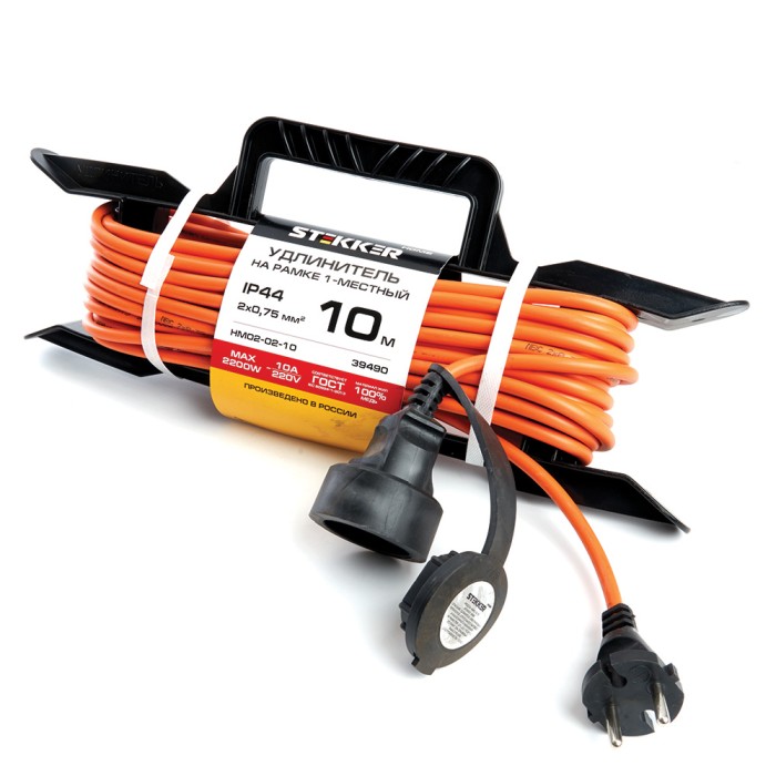 Удлинители STEKKER HM02-02-10, серия Home, цвет оранжевый, длина 10 м, количество розеток 1, сталь, сечение кабеля 0.75 мм2, тип кабеля ПВС, материал кабеля медь, ток 10А, напряжение 220В, максимальная нагрузка 2200Вт, т...