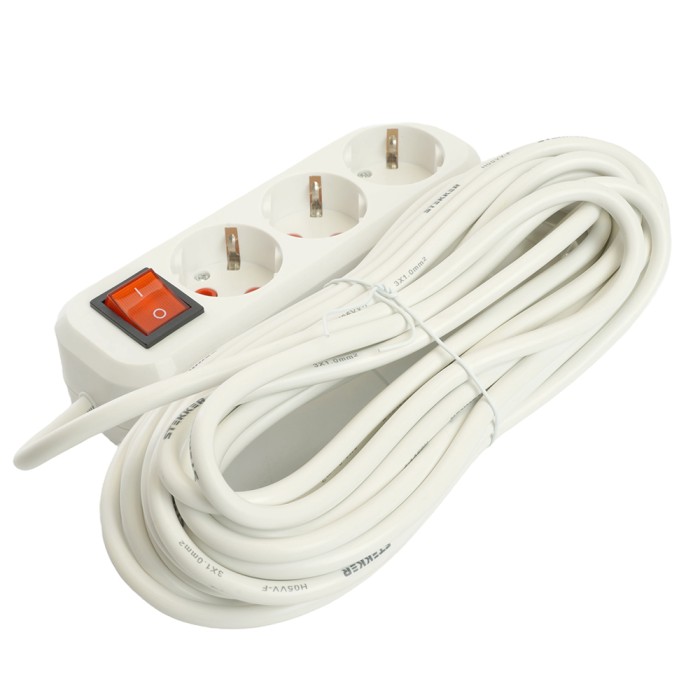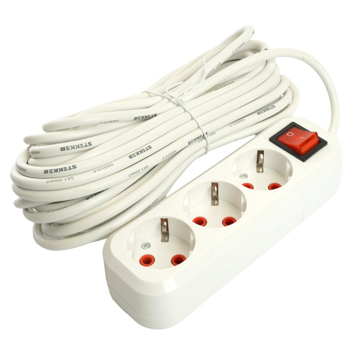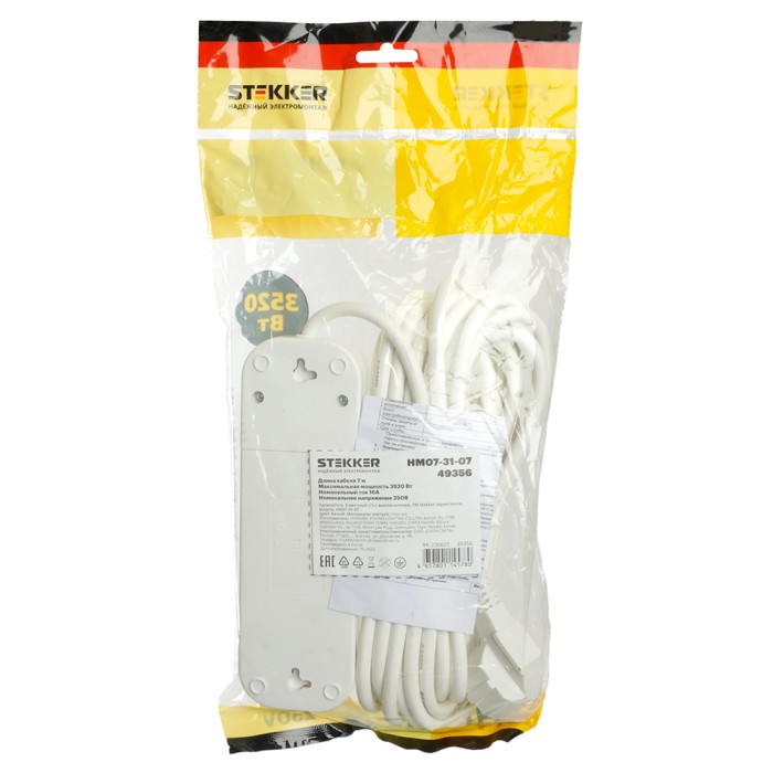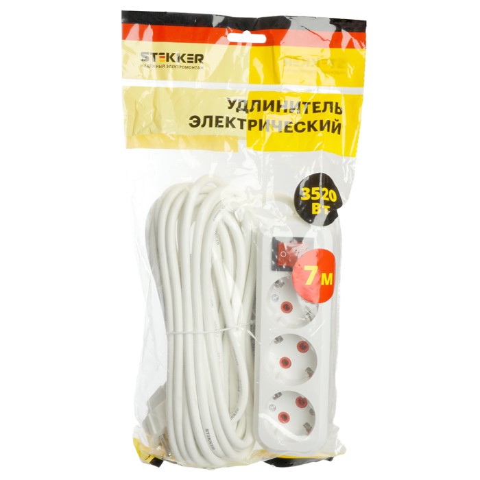 Удлинители STEKKER 49356, серия Home, цвет белый, длина 7 м, количество розеток 3, сталь, сечение кабеля 1 мм2, тип кабеля ПВС, материал кабеля -, ток 16А, напряжение 250В, максимальная нагрузка 3520Вт, тип вилки - пряма...