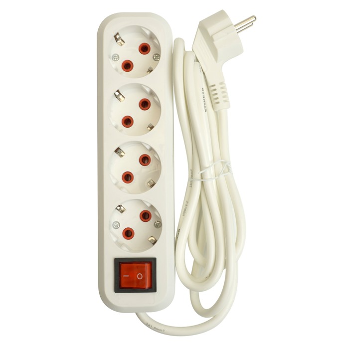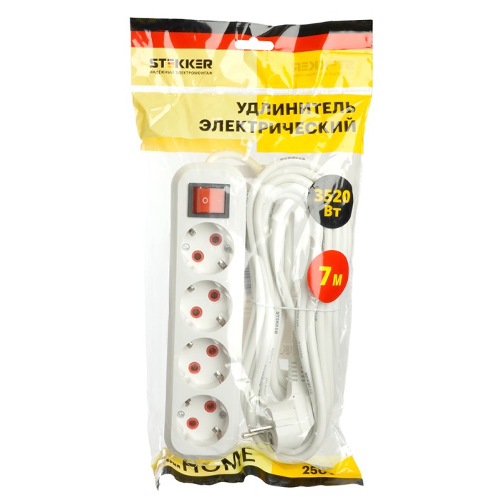 Удлинители STEKKER 49361, серия Home, цвет белый, длина 7 м, количество розеток 4, сталь, сечение кабеля 1 мм2, тип кабеля ПВС, материал кабеля -, ток 16А, напряжение 250В, максимальная нагрузка 3520Вт, тип вилки - пряма...