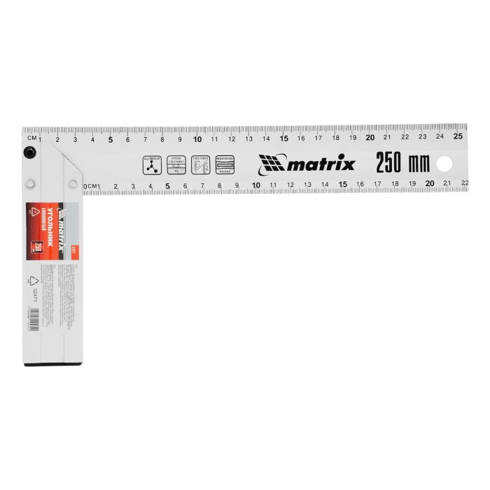 Алюминиевый литой угольник Matrix 32471 длиной 250 мм используется для проверки и разметки прямых углов во время столярных и отделочных работ. Простой, но незаменимый инструмент повышает точность работы и позволяет получить качественный результат.ПреимуществаНадежность и долговечность — анодированная поверхность устойчива к коррозии и механическим нагрузкам.Удобная эксплуатация — разметка нанесена на полотно с обеих сторон.Эргономичность — благодаря желобу на профиле угольник удобно держать в руке.Информативная маркировка — на корпус нанесены пиктограммы с обозначением основных характеристик.Возможность подвесного хранения — в корпусе имеется специальное отверстие.
