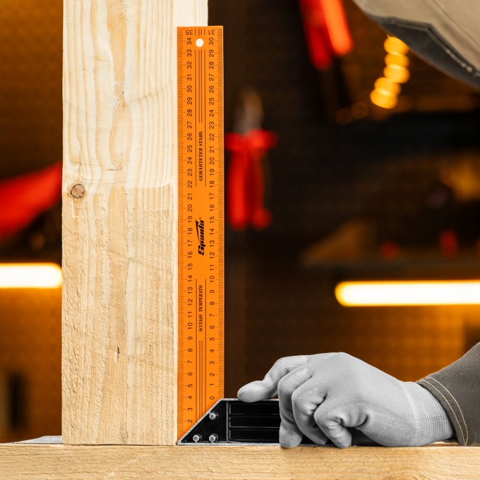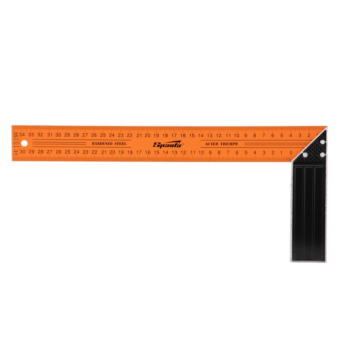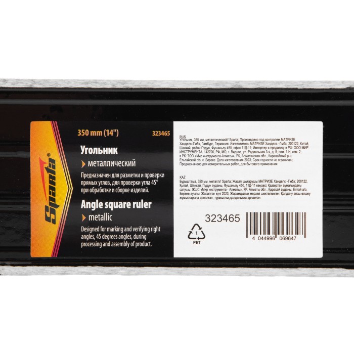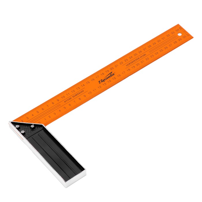 Металлический угольник Sparta 323465 длиной 350 мм пригодится для выполнения столярных и строительных работ. С его помощью можно задать и проверить угол 90° при сборке или обработке различных изделий.ПреимуществаКонструкционная прочность — угольник изготовлен из стали У8А.Защита от разрушения — окрашенная поверхность угольника устойчива к коррозии.Удобная эксплуатация — на инструмент нанесена двухсторонняя разметка.Продуманное хранение — специальное отверстие позволяет подвешивать угольник на крючок или гвоздь.