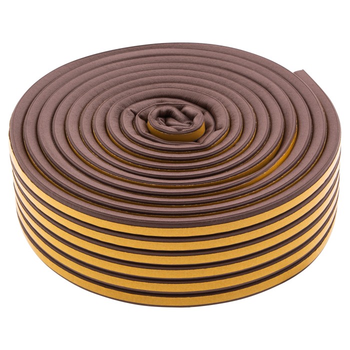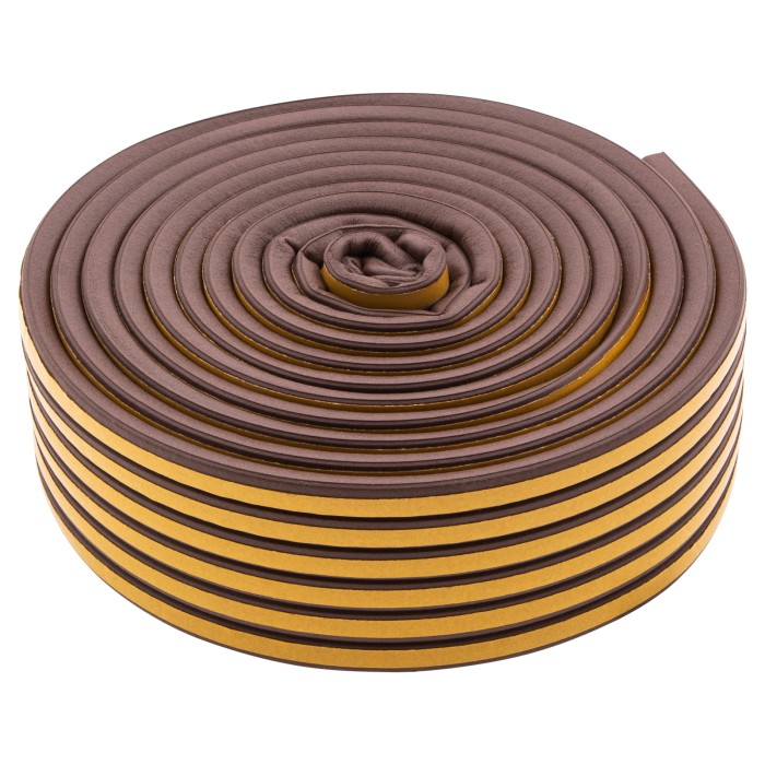 Коричневый резиновый уплотнитель Сибртех 88904 длиной 24 м, с профилем «D», предназначен для герметизации и уплотнения оконных и дверных блоков с целью предотвращения сквозняков и вибраций, защиты от влаги и пыли, создания эффективной тепло- и звукоизоляции. Клеевой слой обеспечивает высокую адгезию и надежную фиксацию. Использование уплотнителя позволяет значительно снизить энергетические и экономические затраты. Лента с D-профилем 9 х 8 мм подойдет для щелей размером 3-7 мм.ПреимуществаДолговечность — уплотнитель изготовлен из износостойкой вспененной резины EPDM.Устойчивость к разрушению — утеплитель не боится воздействия ультрафиолета.Эластичность — уплотнитель легко восстанавливает форму после сжатия, не твердеет в течение всего срока использования.Надежность — материал уплотнителя водонепроницаем и выдерживает большие колебания температуры.Удобное хранение — бумажная лента защищает клейкий слой от высыхания.